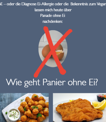 EoE – oder die Diagnose Ei-Allergie oder Bekenntnis zum Veganer machen eine etwas andere Panade nötig. 1 EL glutenfreies Mehl oder Maisstärke 3 EL Wasser ½ TL Salz ½ TL Edelsüßpaprika 50 g Semmelbrösel (glutenfrei: free from bei Spar sind eine klare Empfehlung) Zutaten zum Panieren nach Wahl (z.B. Tofu, Blumenkohl, Champignons etc.) In einer […]