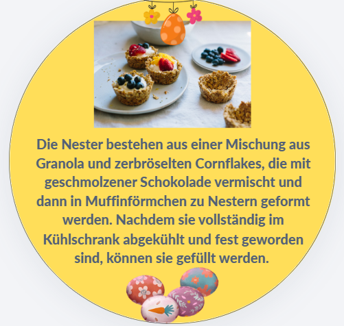 Die süße Nachspeise am Ostertisch soll ein bisschen crunchy sein, cremig und bunt und dabei soll es auch nicht üppig sein! Hmmh, und schnell herzustellen soll es auch sein. Voila – wie wäre es mit Granola-Osternestern? Dafür kann man das Granola selbst herstellen, dafür habe ich schon einige Rezepte veröffentlicht.