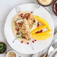 Zum Hauptgang: Zartes Putenfilet mit mildem Pastinaken-Kartoffel-Püree und fruchtigen Mangospalten