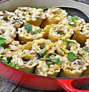 - Ricotta + Spinat + Pilze + Salz + Thymian mischen.